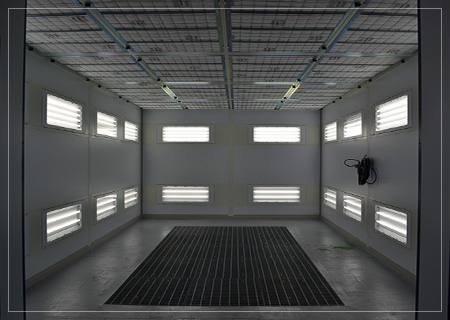 大型車対応の密閉型塗装ブースは国内最大手の【ANDEX】社製「CAB-07X」を使用。